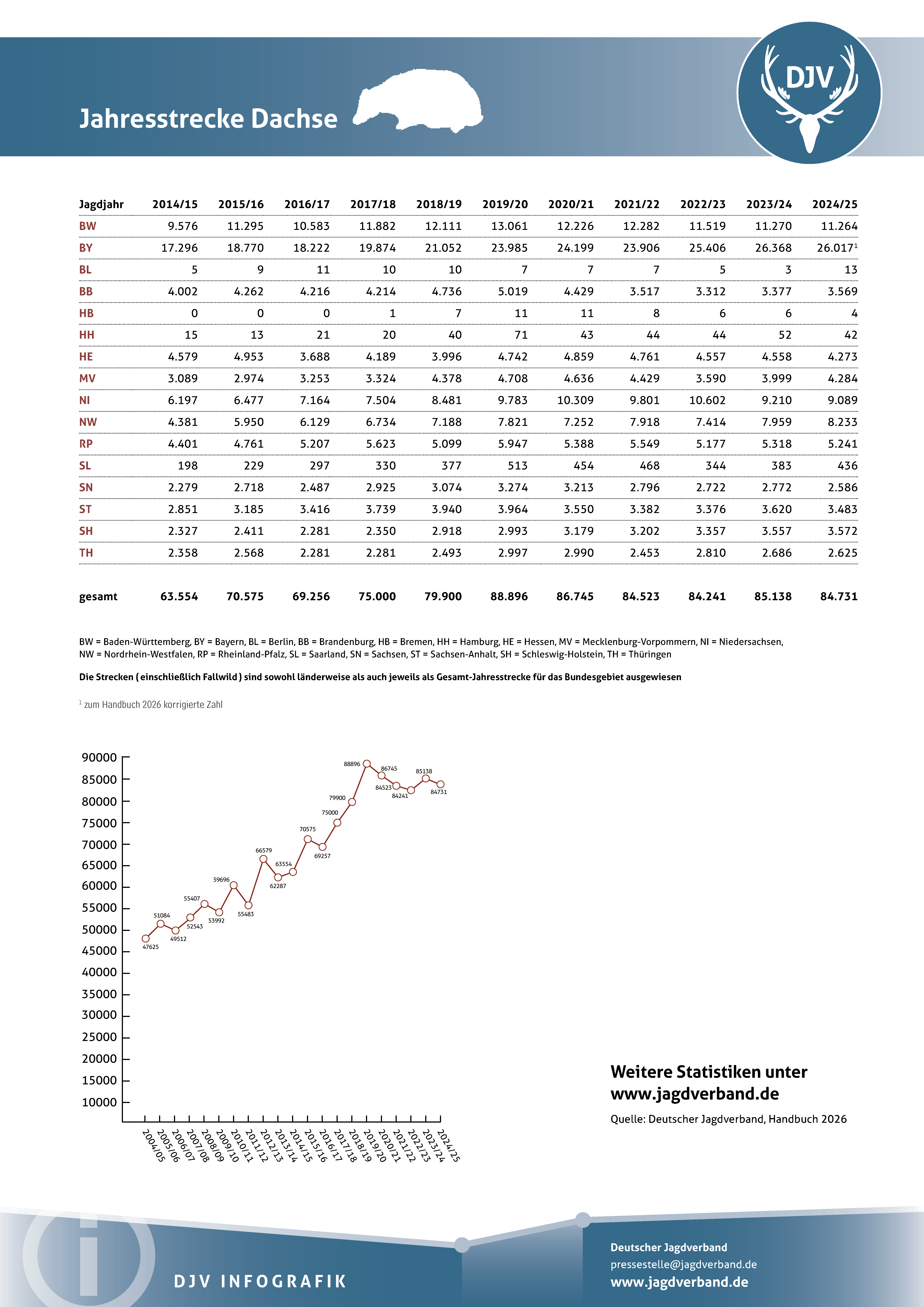Jagdstatistik Dachse 2023/2024