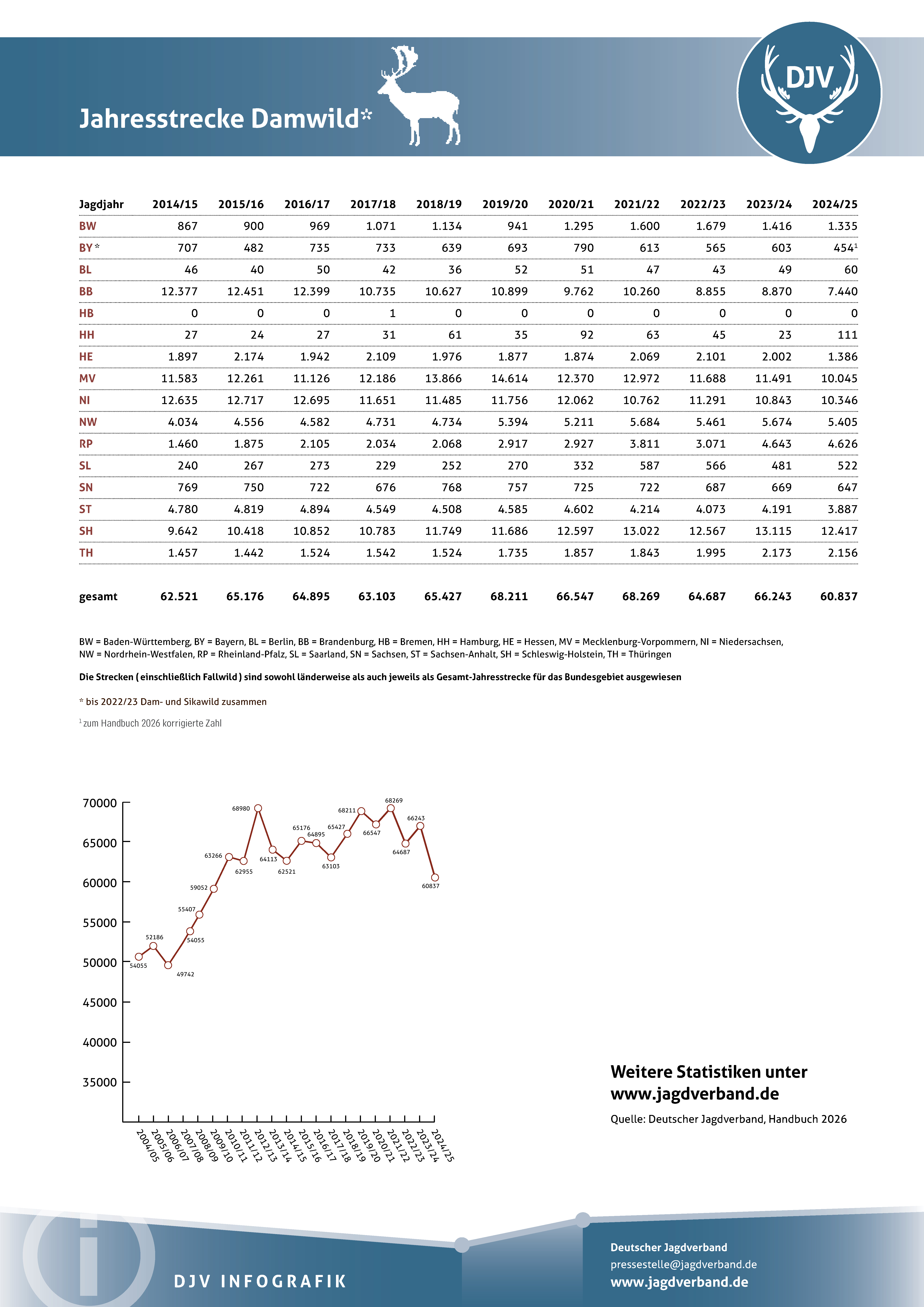 Jagdstatistik Damwild 2023/2024