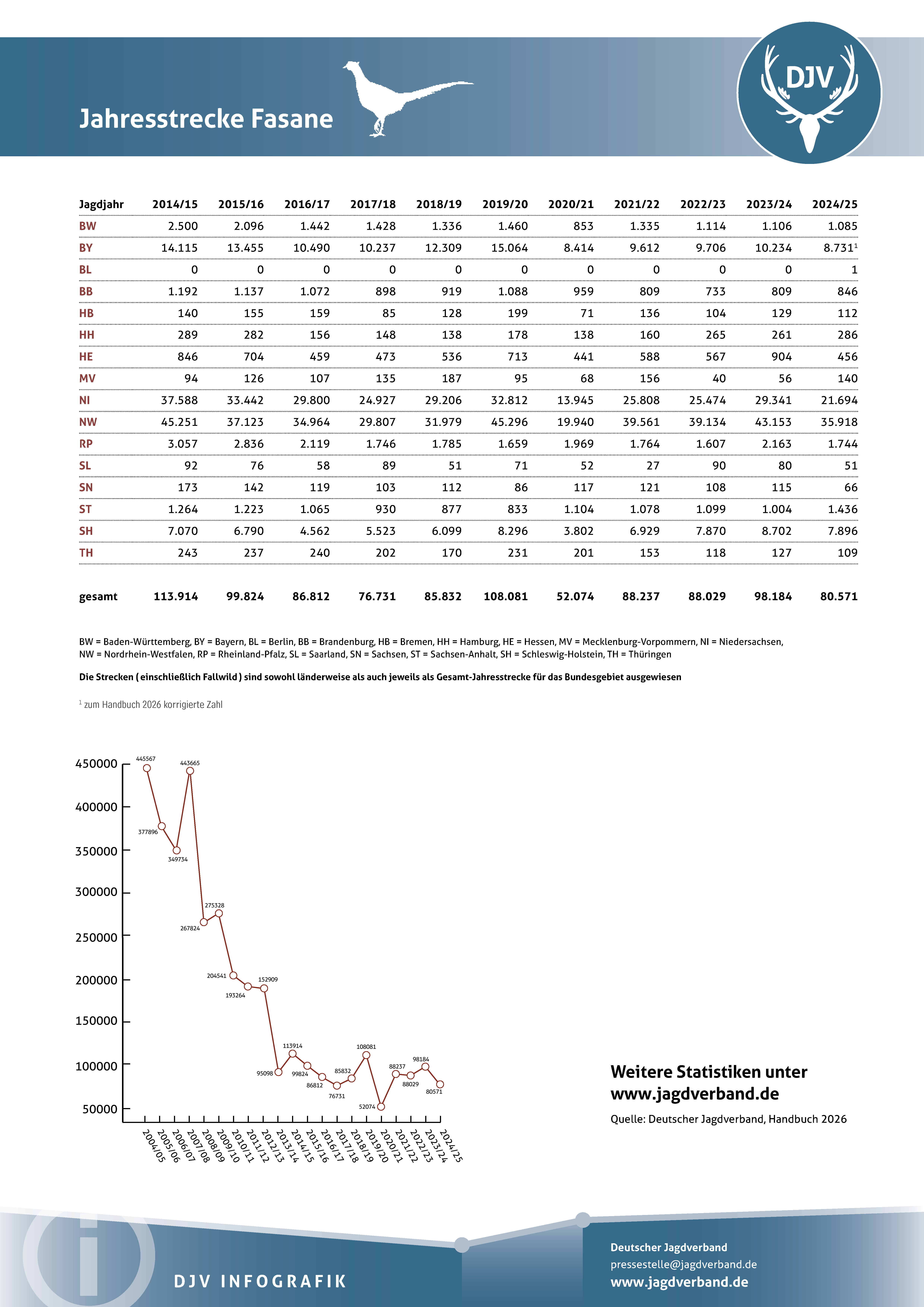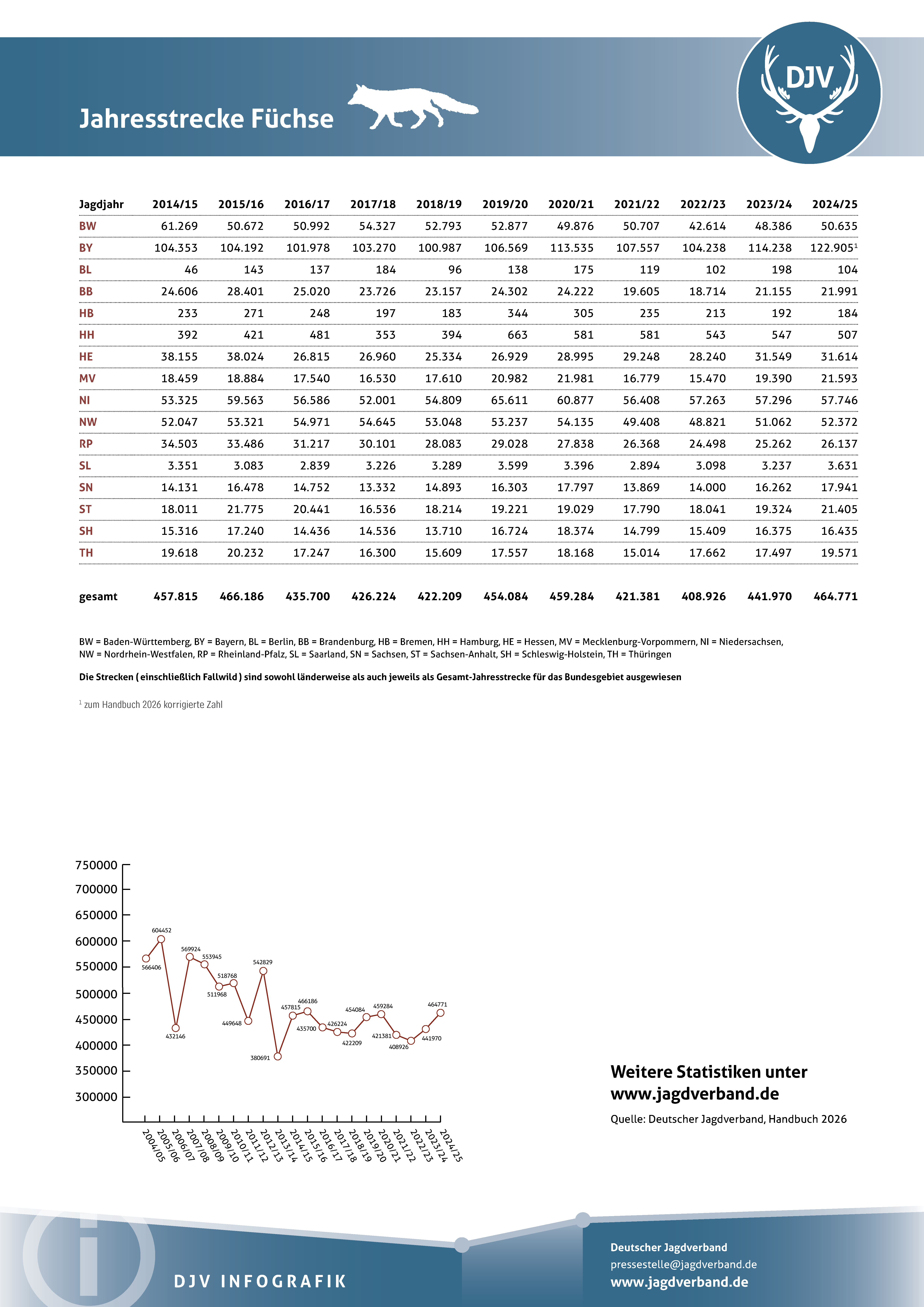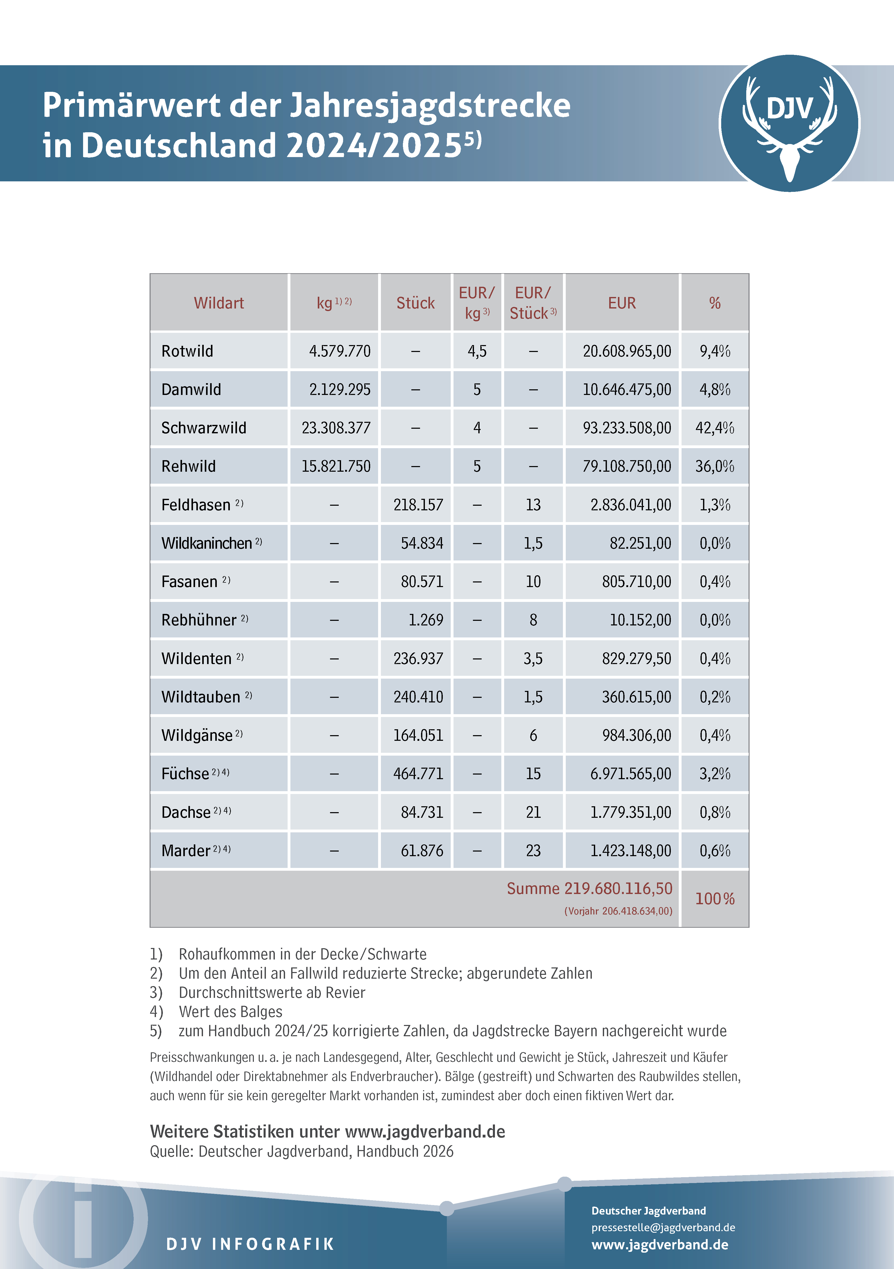 Gesamtübersicht - Jahresjagdstrecke Bundesrepublik Deutschland