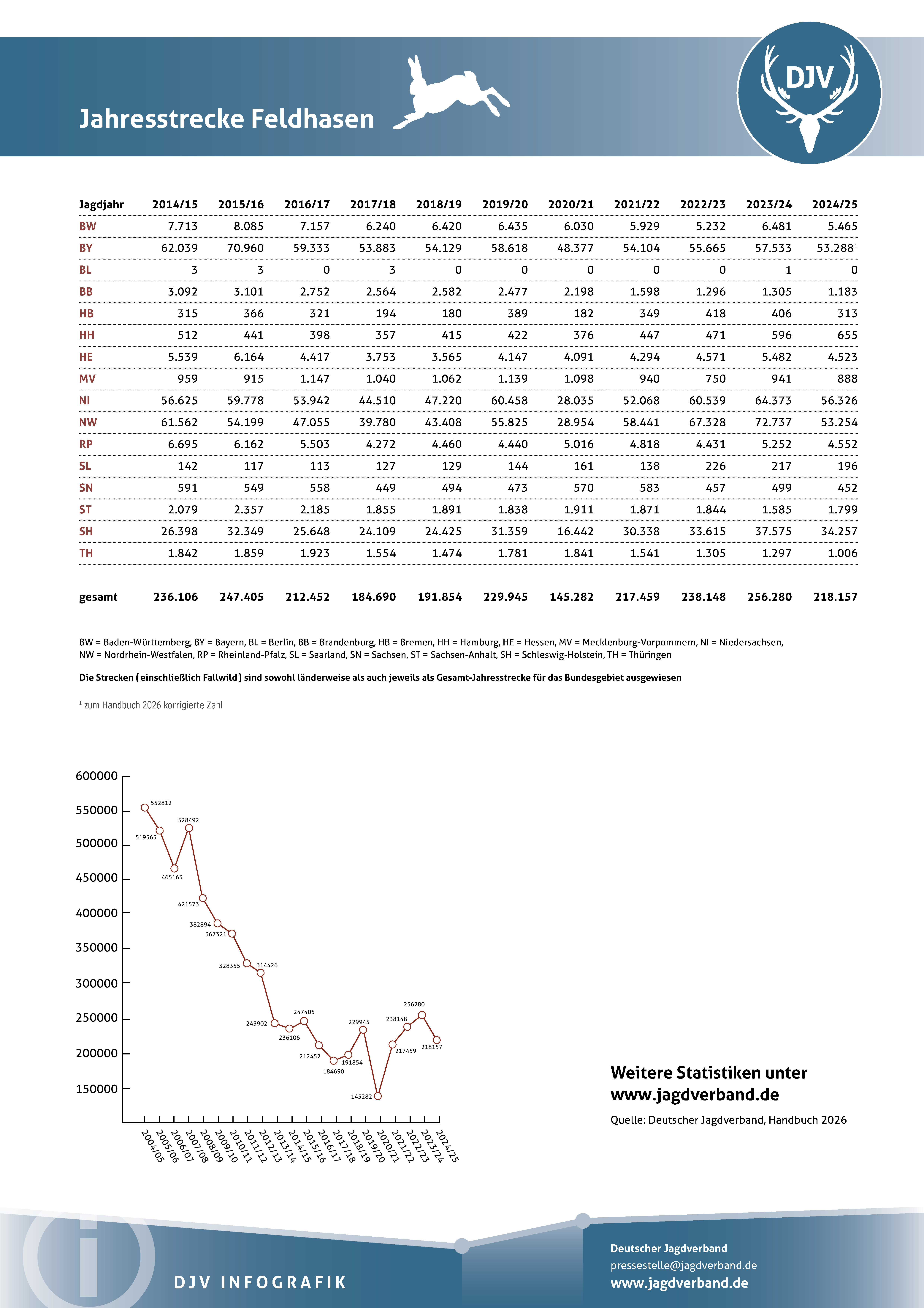 Jagdstatistik Feldhasen 2023/2024