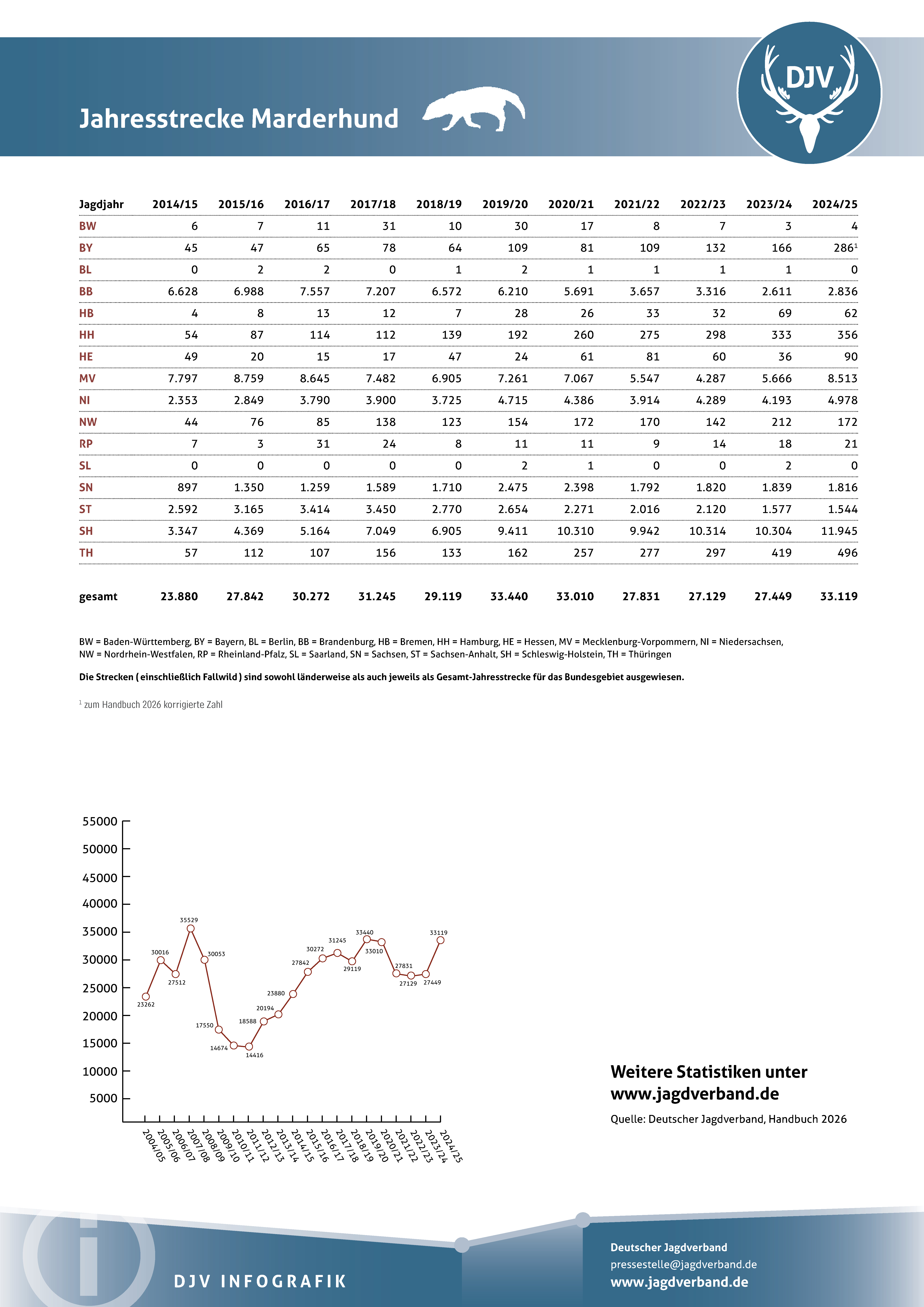 Jagdstatistik Marderhund 2023/2024