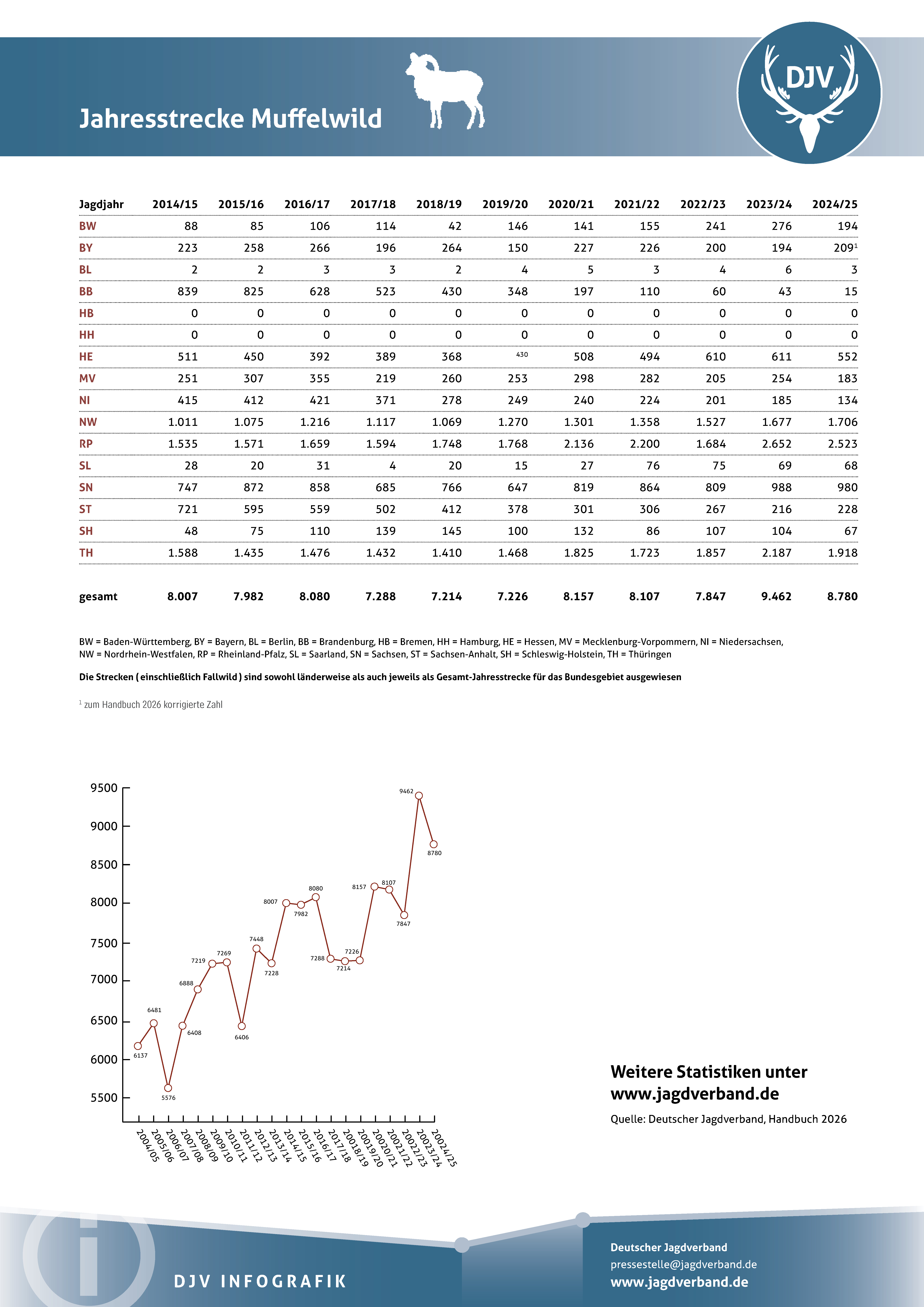 Jagdstatistik Muffelwild 2023/ 2024