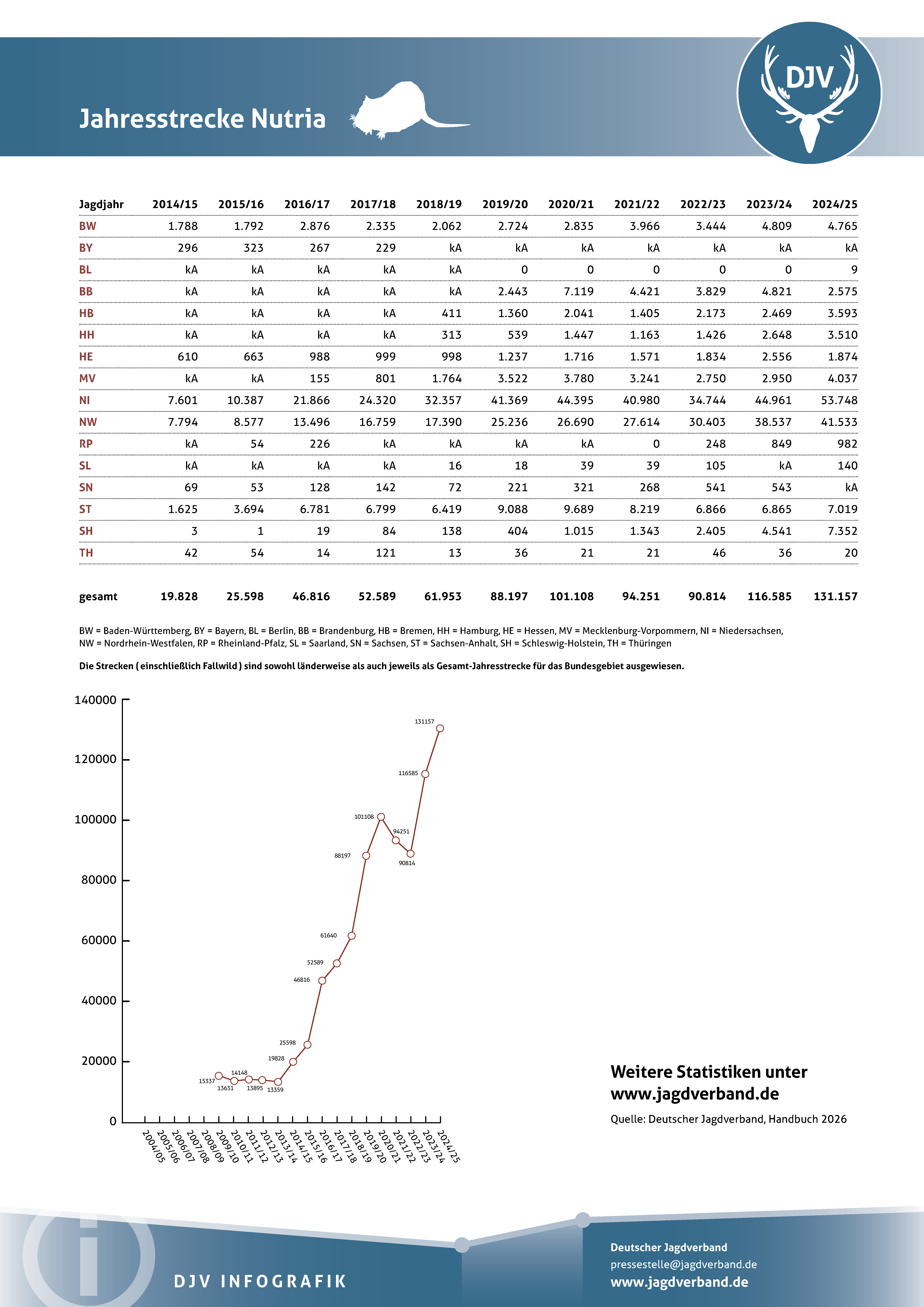 Jagdstatistik Nutria 2023/2024