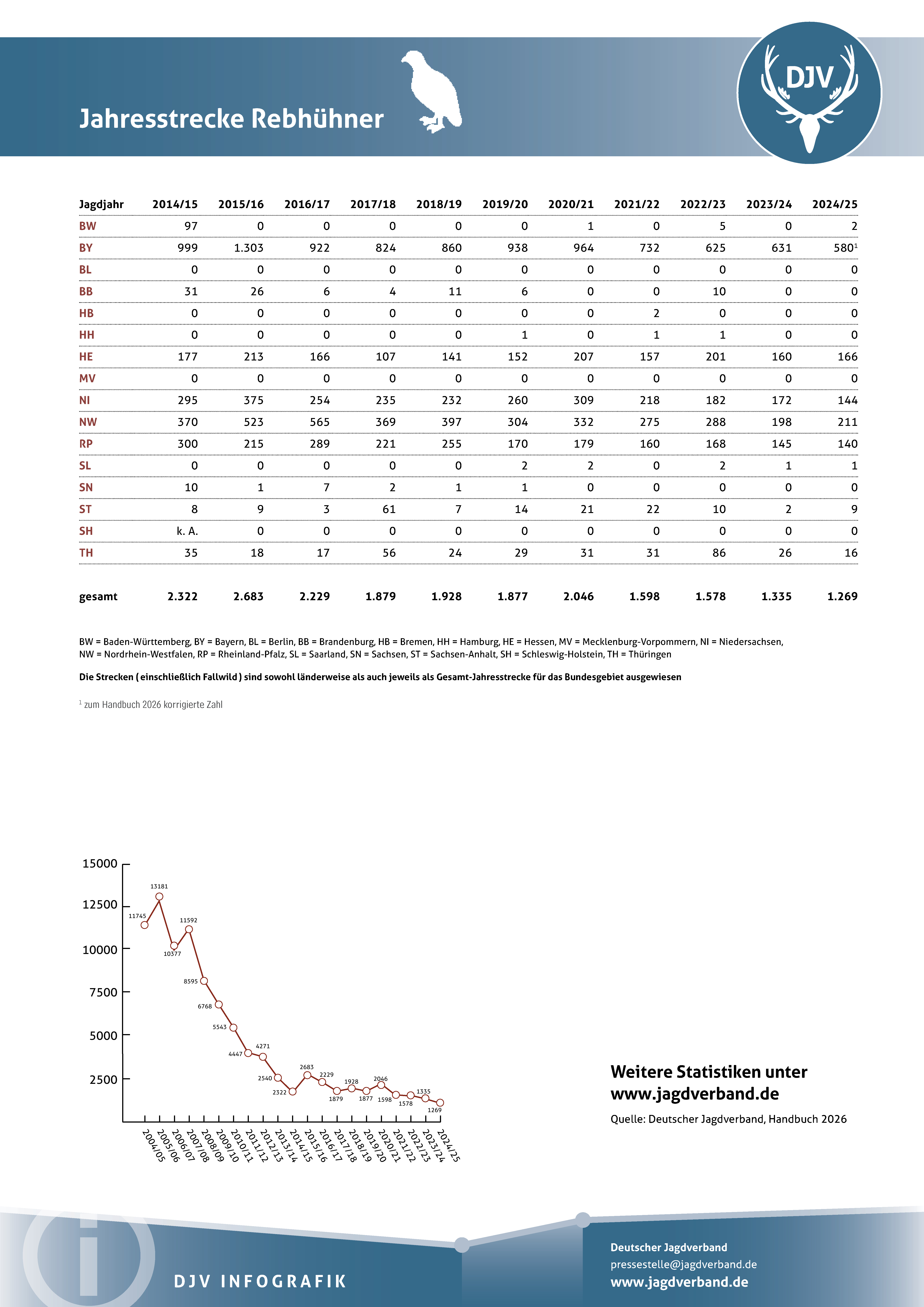 Jagdstatistik Rebhühner 2023/2024