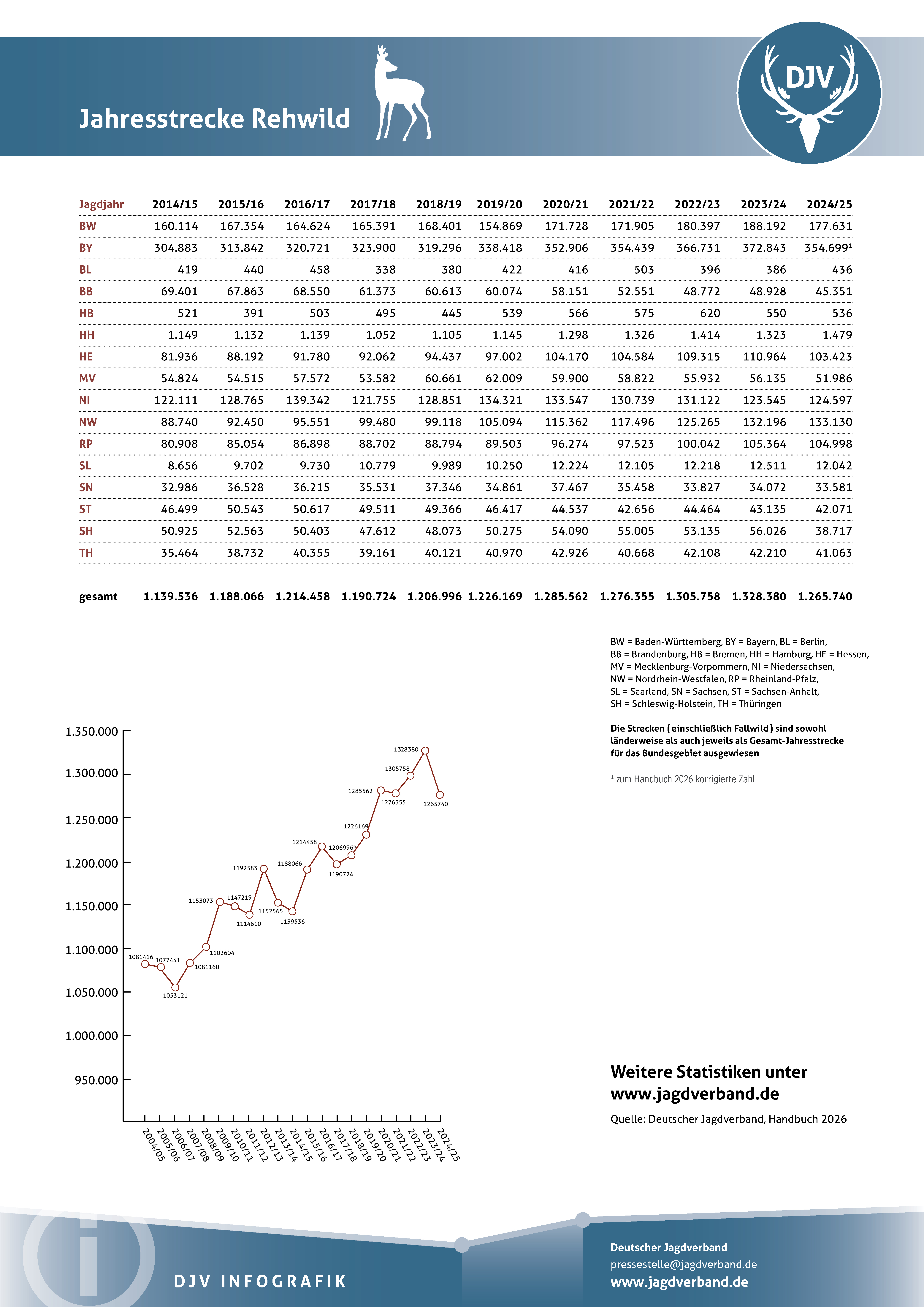 Jagdstatistik Rehwild 2023/2024