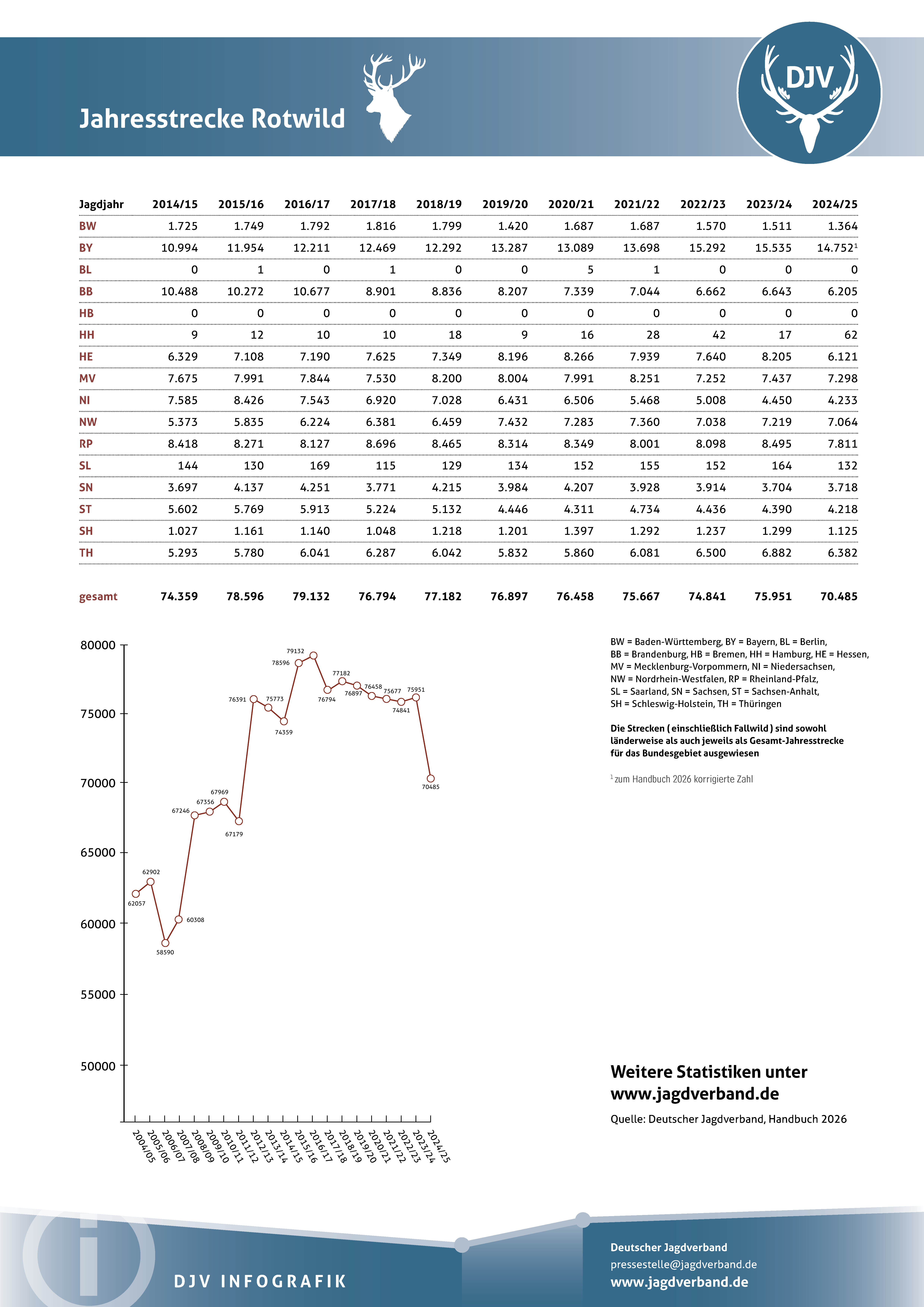 Jagdstatistik Rotwild 2023/2024