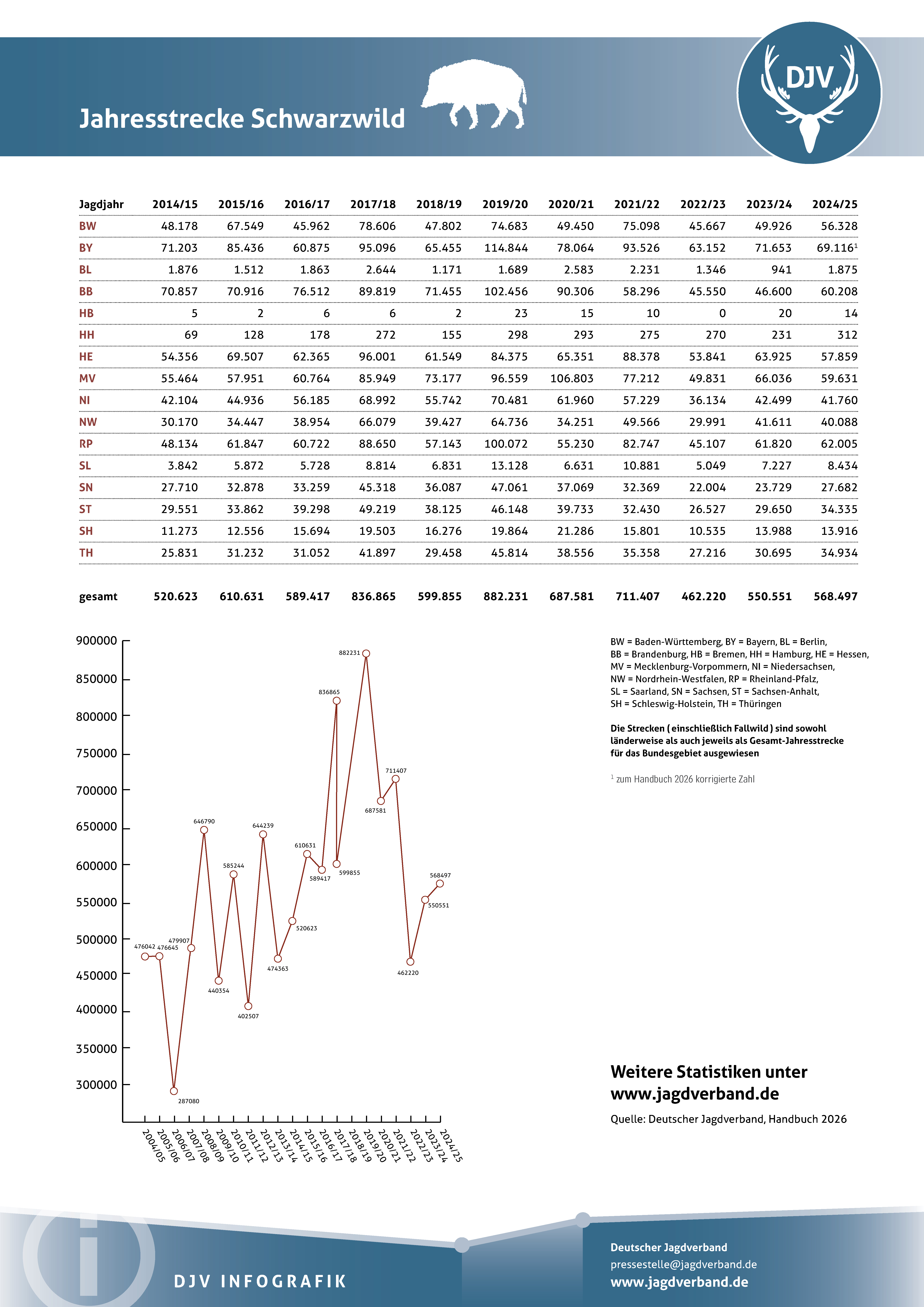 Jagdstatistik Schwarzwild (Wildschweine) 2023/2024