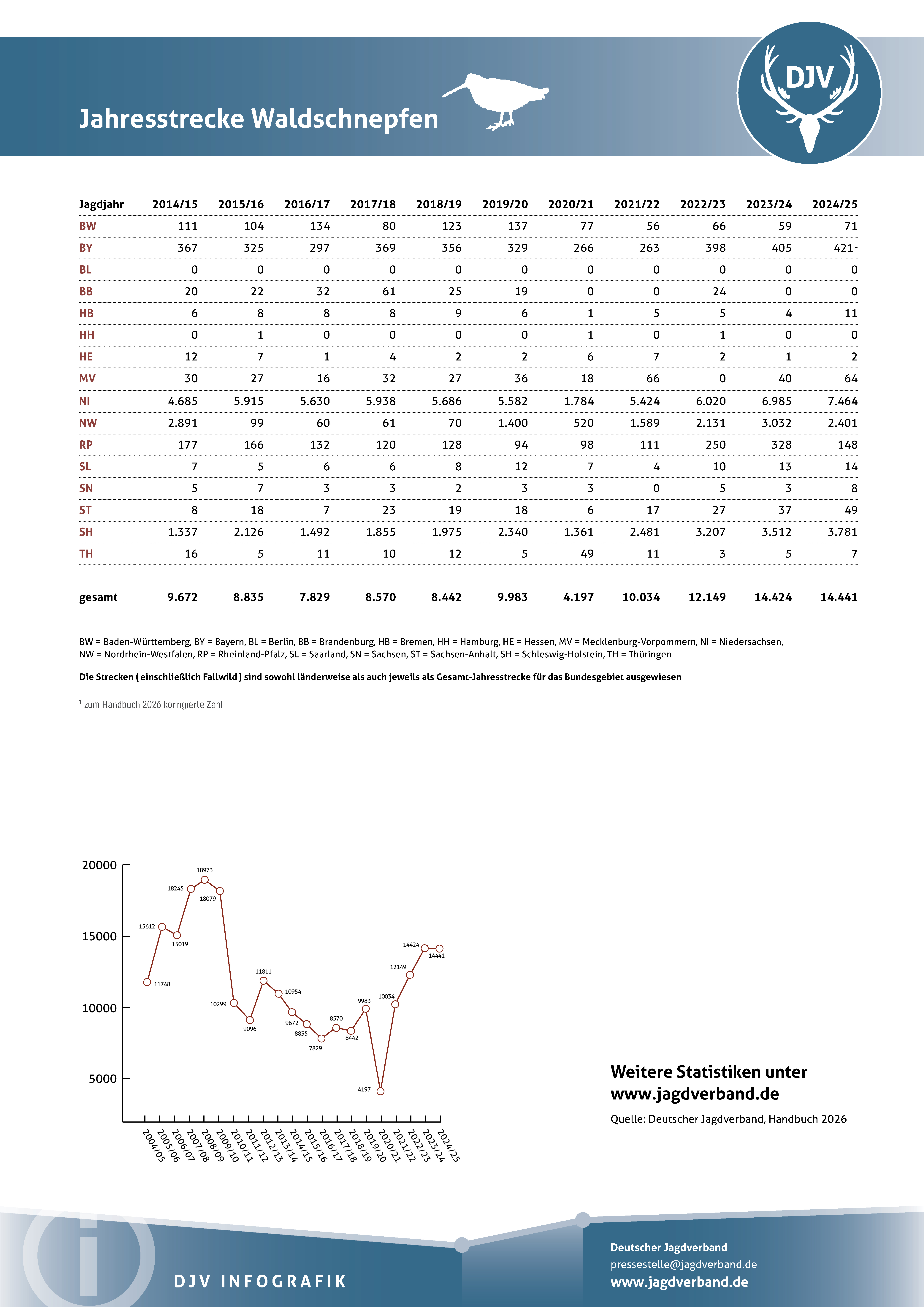 Jagdstatistik Waldschnepfen 2023/2024