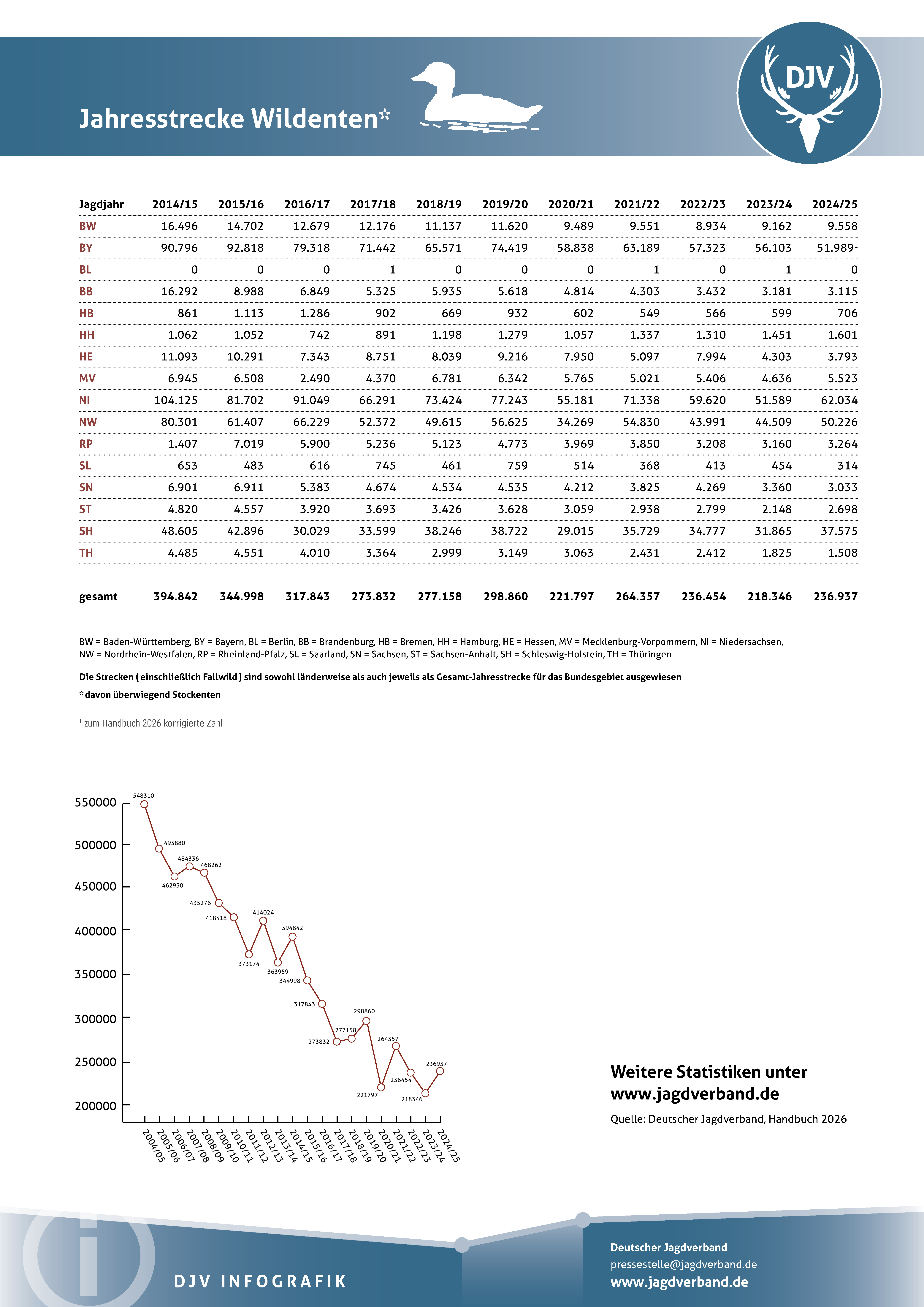 Jagdstatistik Wildenten 2023/2024