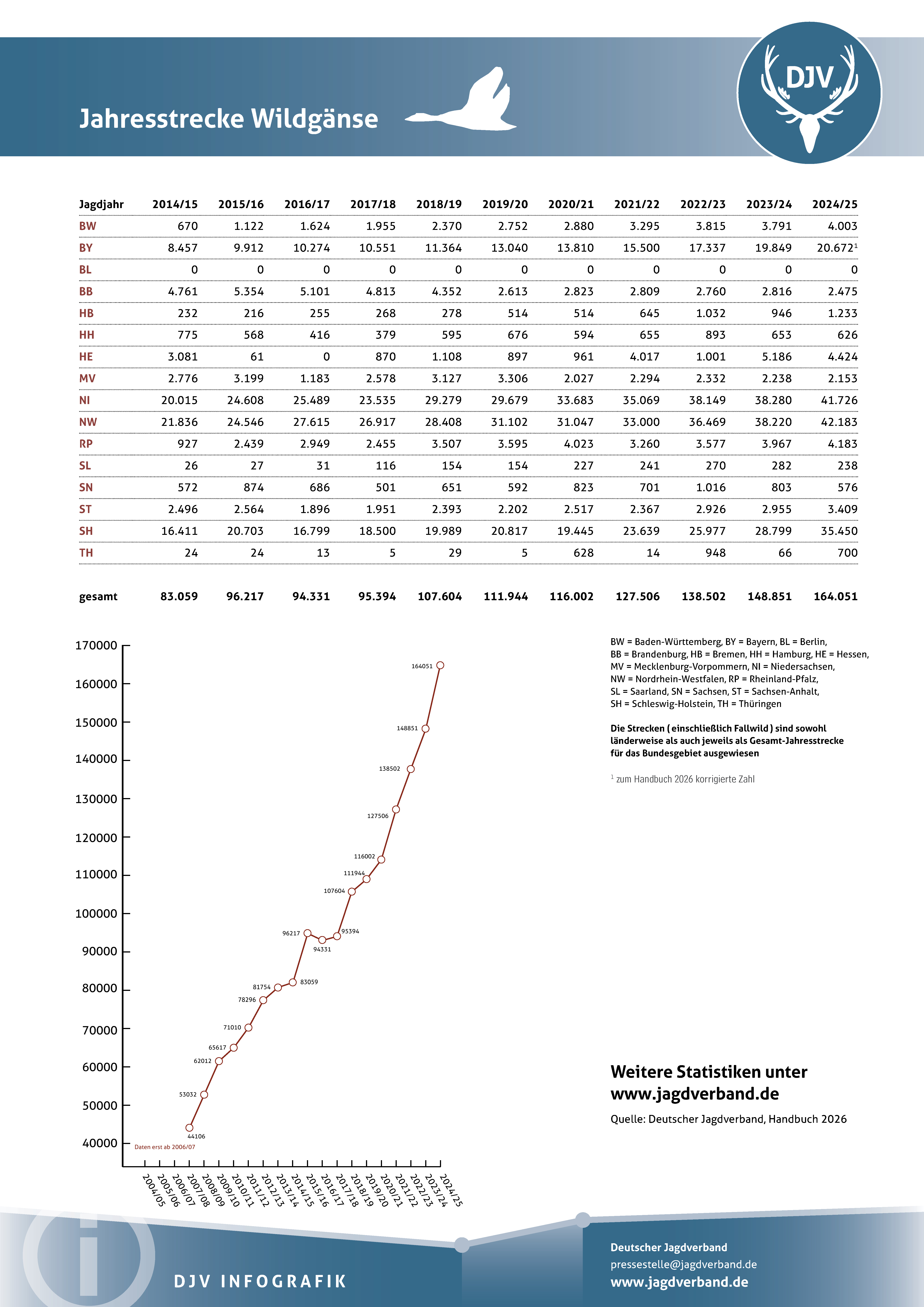 Jagdstatistik Wildgänse 2023/2024