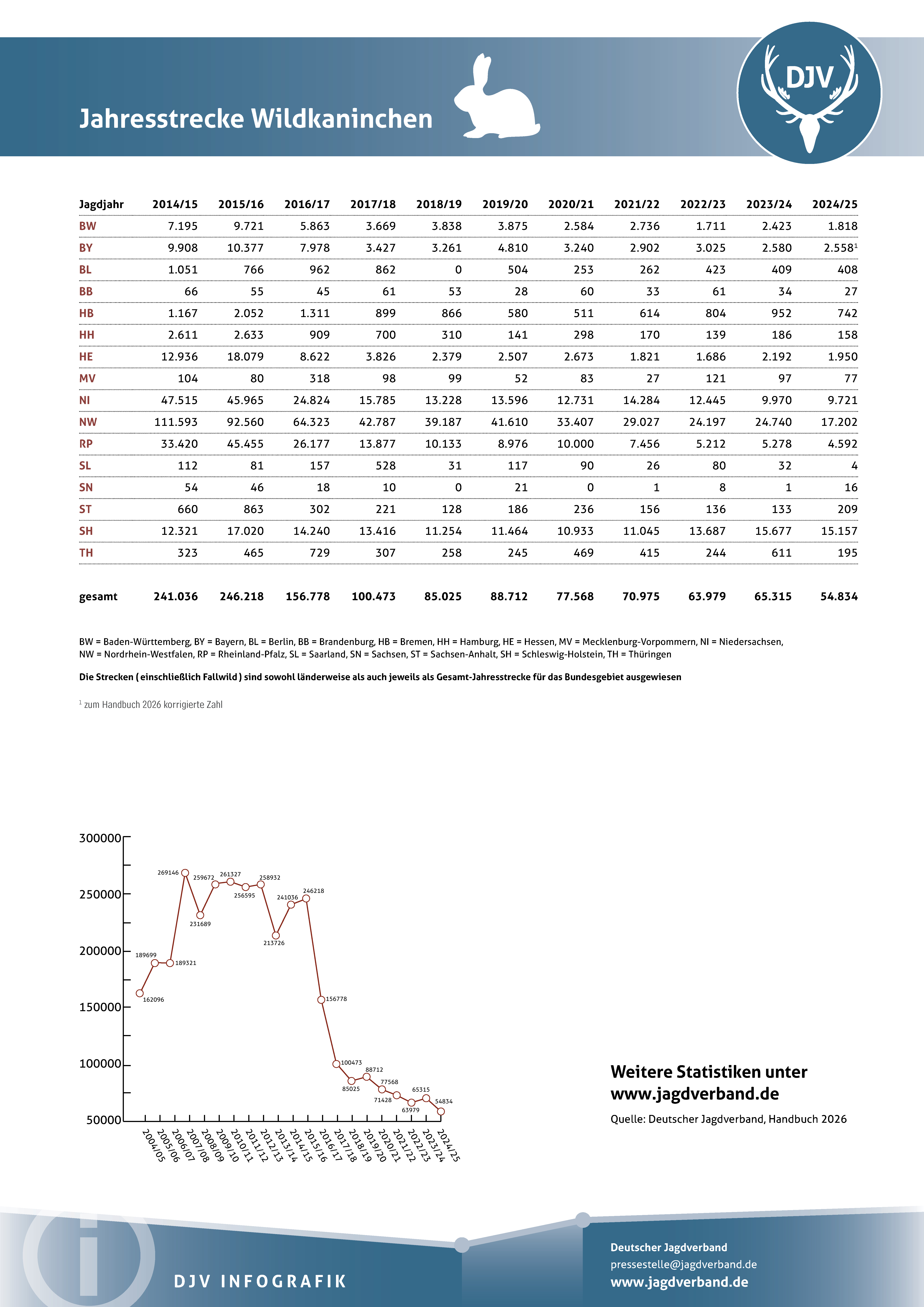 Jagdstatistik Wildkaninchen 2023/2024